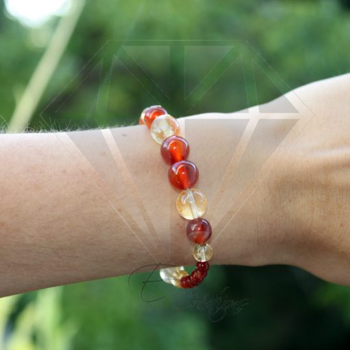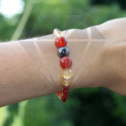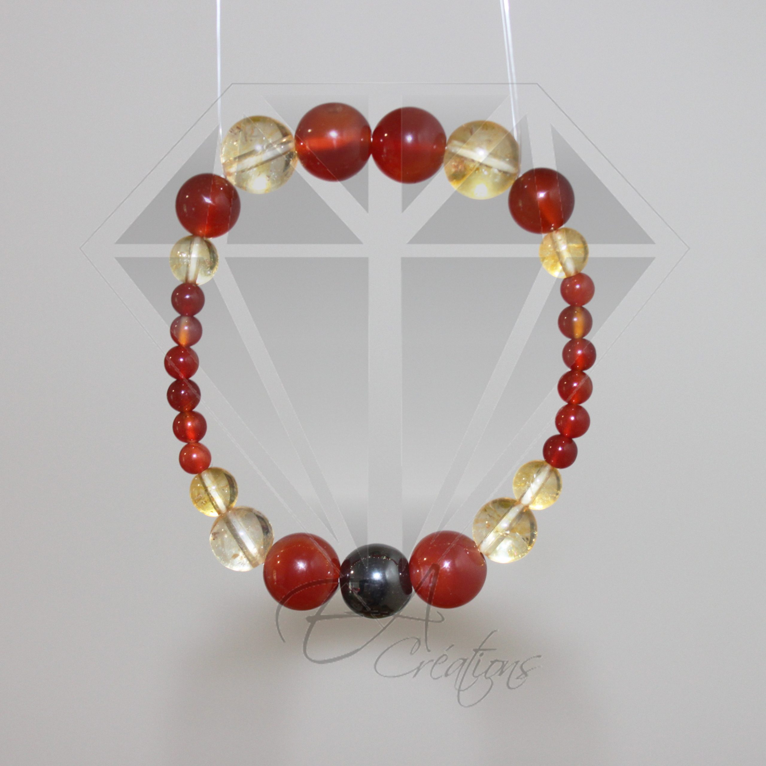Ce bracelet est composé de 27 pierres de citrine, cornaline et hématite de 4 mm à 10 mm.