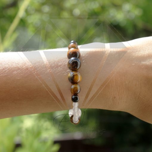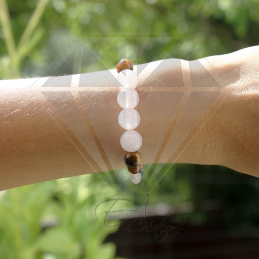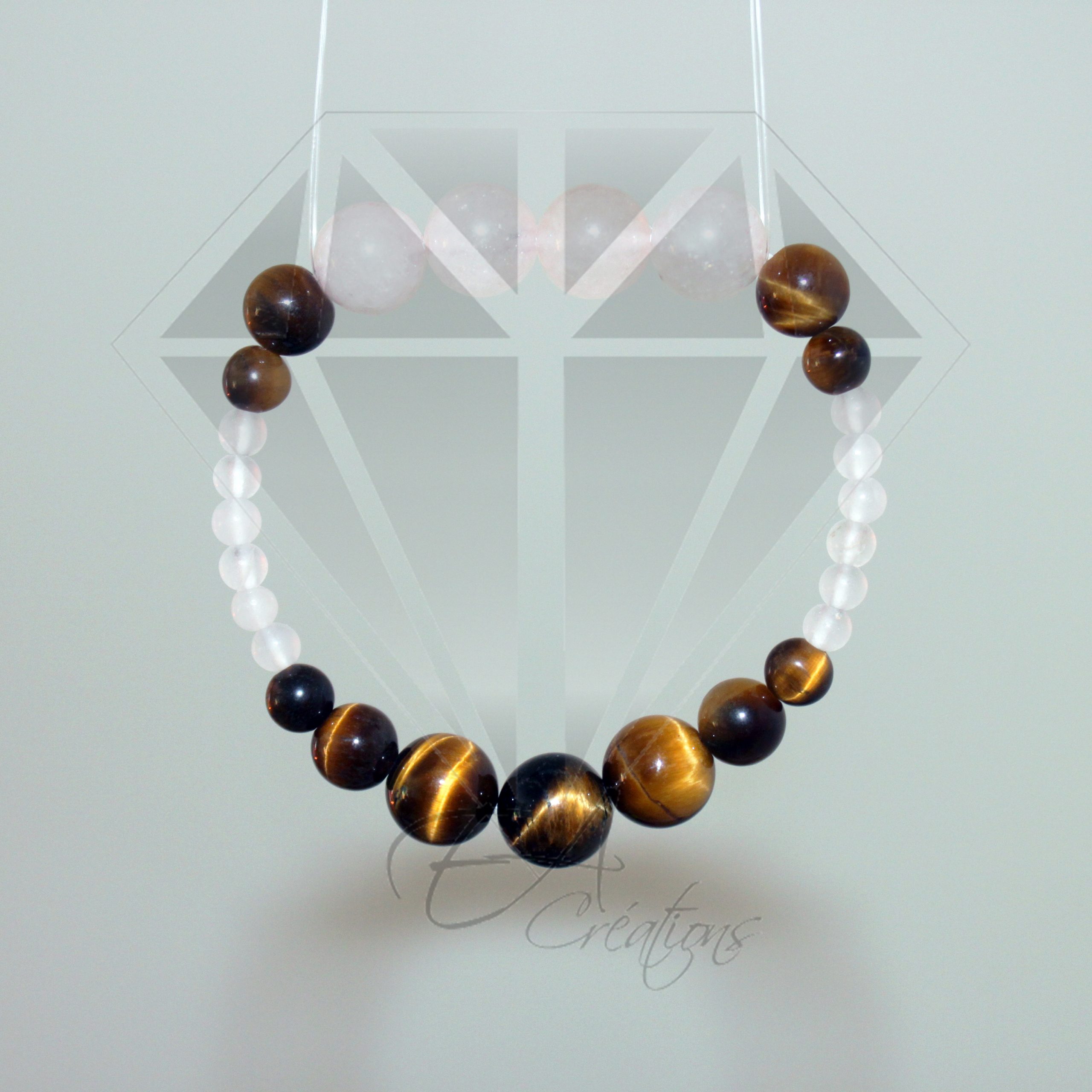 Ce bracelet est composé d’Œil de Tigre et de Quartz Rose de 4 mm à 6 mm.