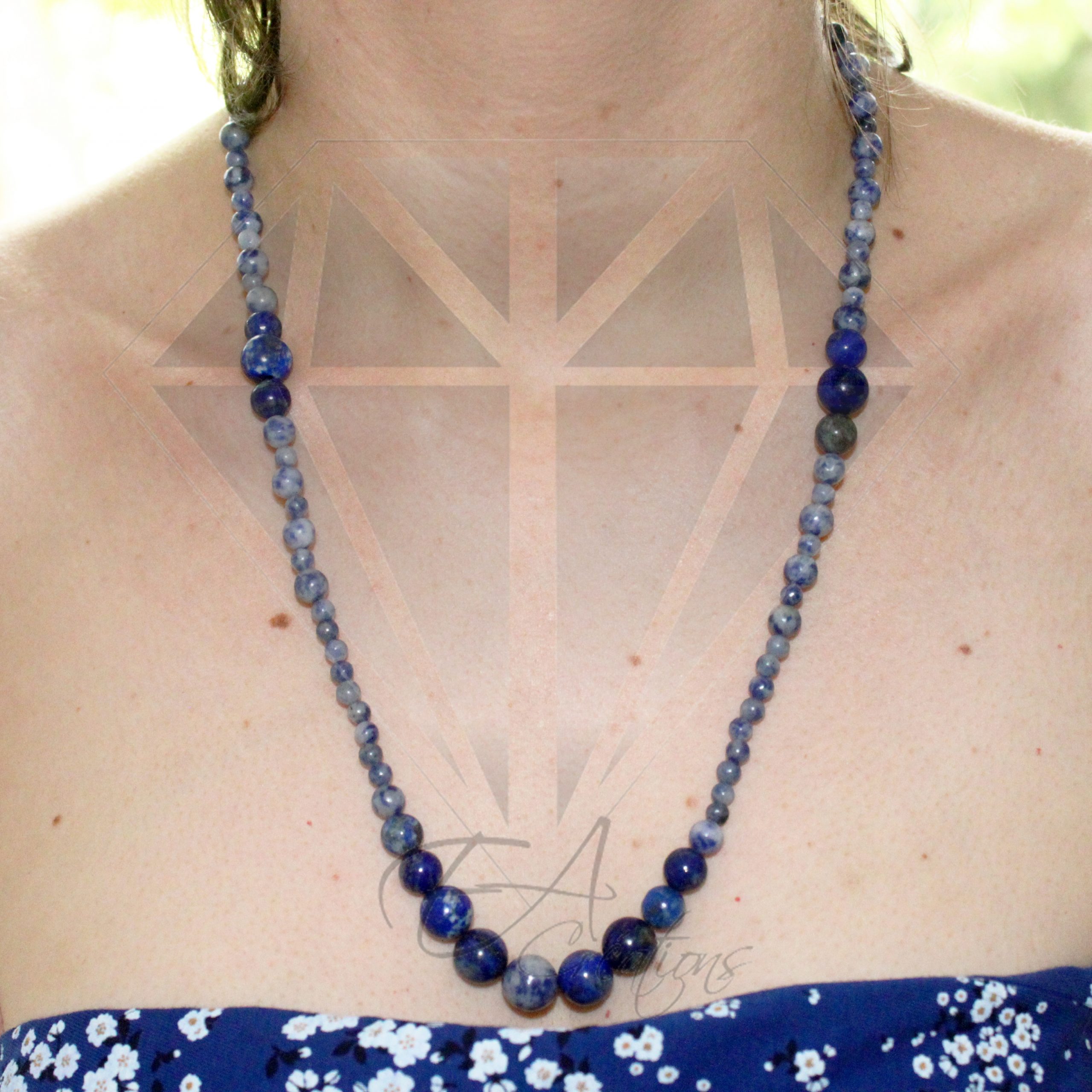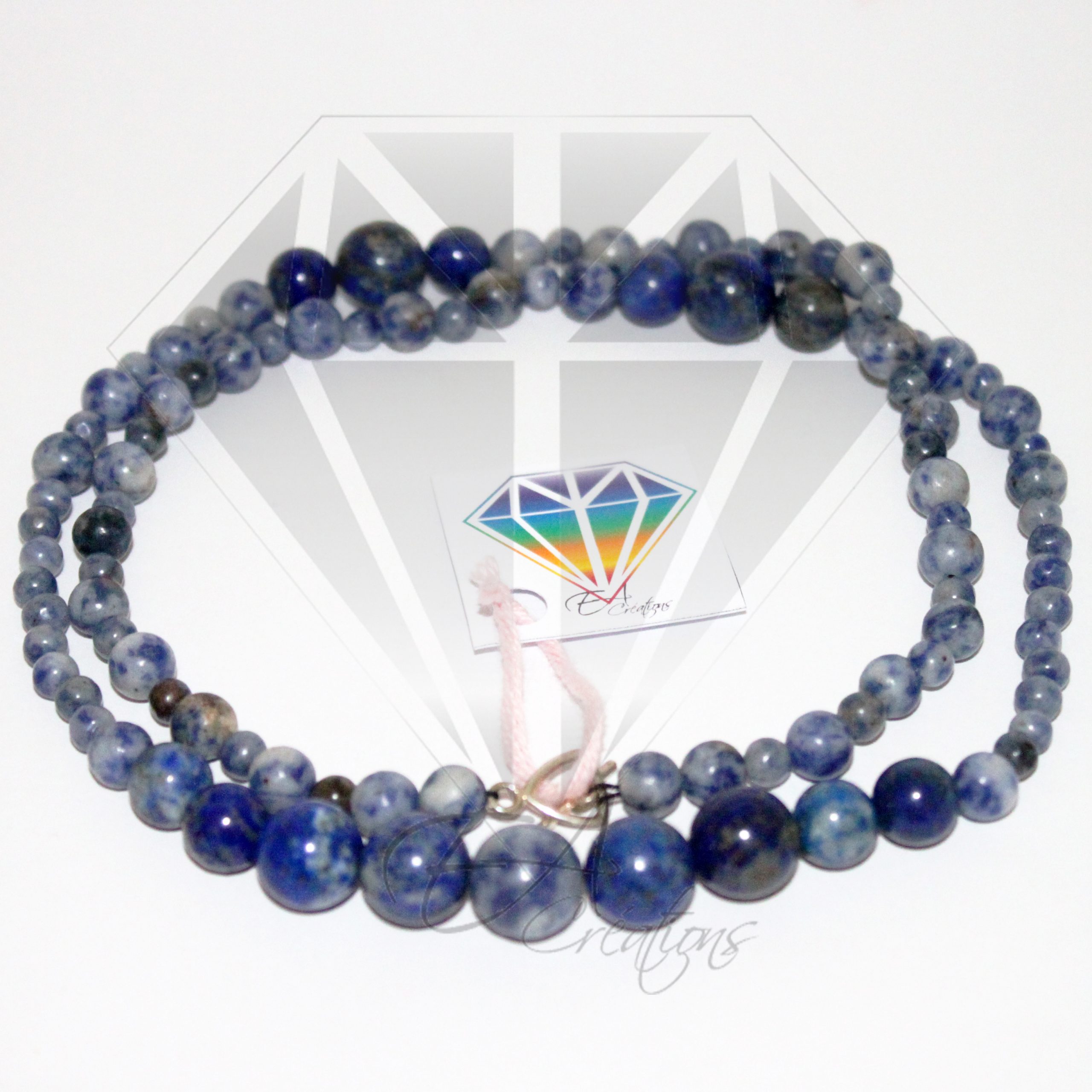 Ce collier est composé de lapis-lazuli et de sodalite, avec un fermoir en argent sterling 925 de 4 à 10 mm.